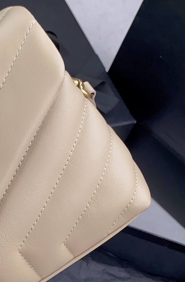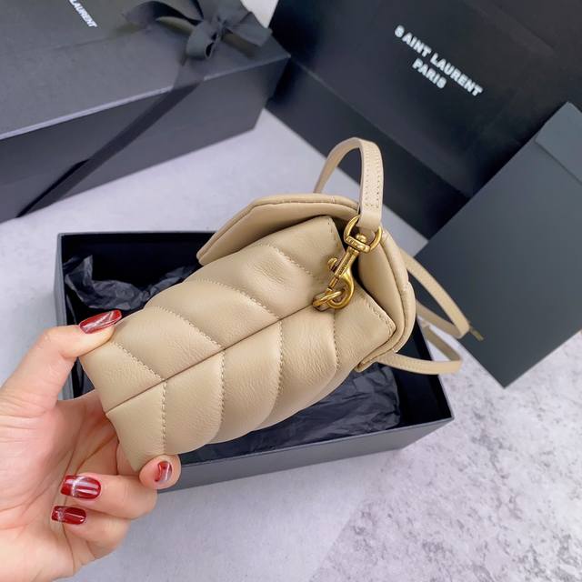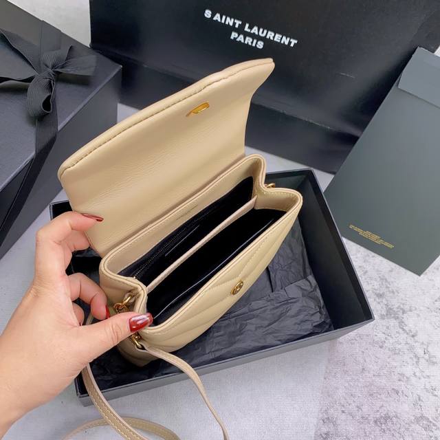 原厂皮版本 不配包装 Loulou迷你号斜挎包原厂皮版本来袭!整包采用柔软的意大利原厂胎牛皮制作,搭配经典的Y家斜条纹绗缝工艺,拥有柔和质地的前翻盖袋,肩带可