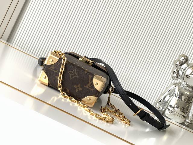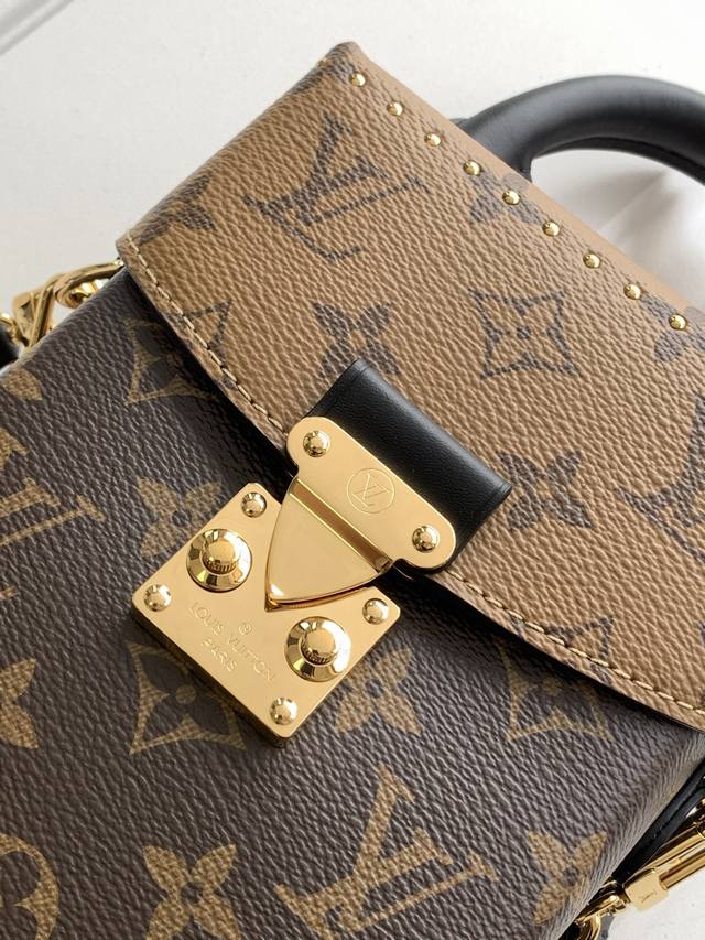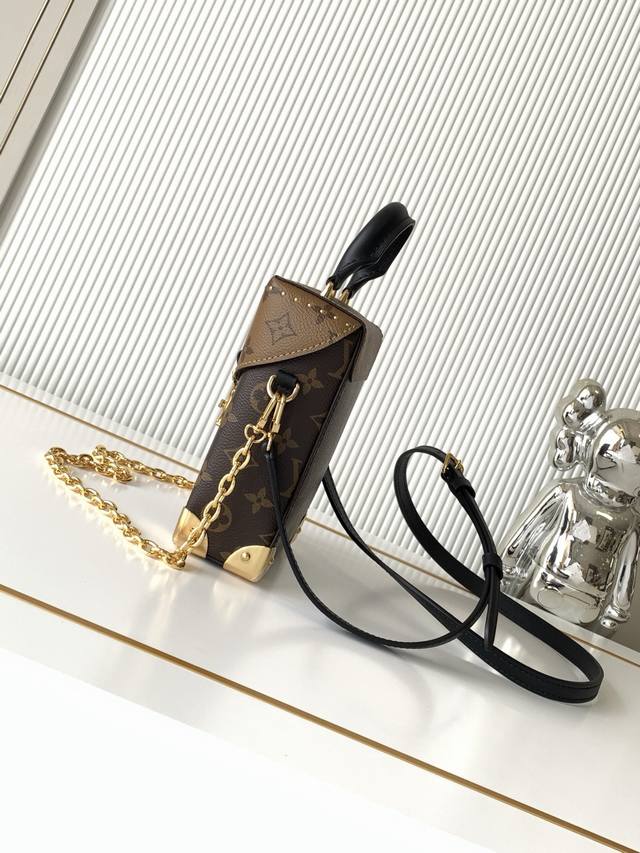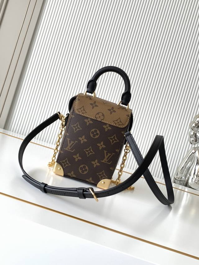 全钢五金 变码芯片 特级配全套包装 M82465老花迷你小背包 本款Camera Box手袋以Monogram和Monogram Reverse帆布塑造摩登构型,融合S-Lock锁扣,金属包角和饰钉等petite Malle 手袋的标志性细节。纤细链条彰显柔美格调,顶部手柄再添舒适背携方式。详细特征