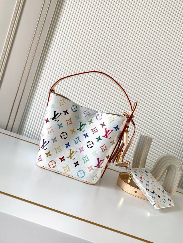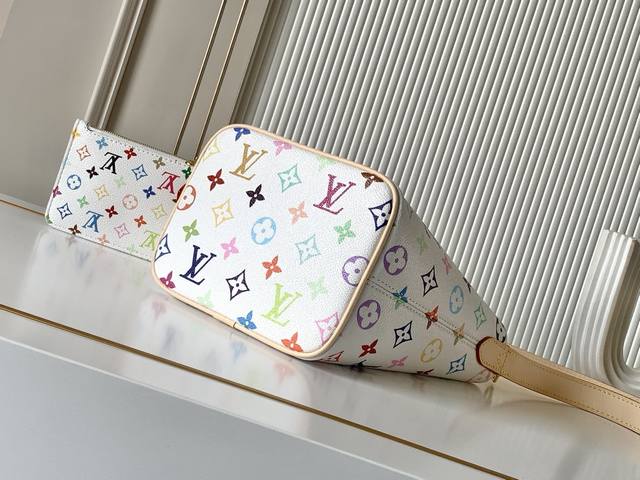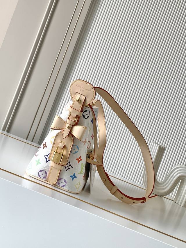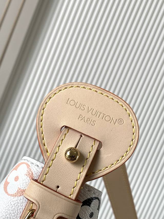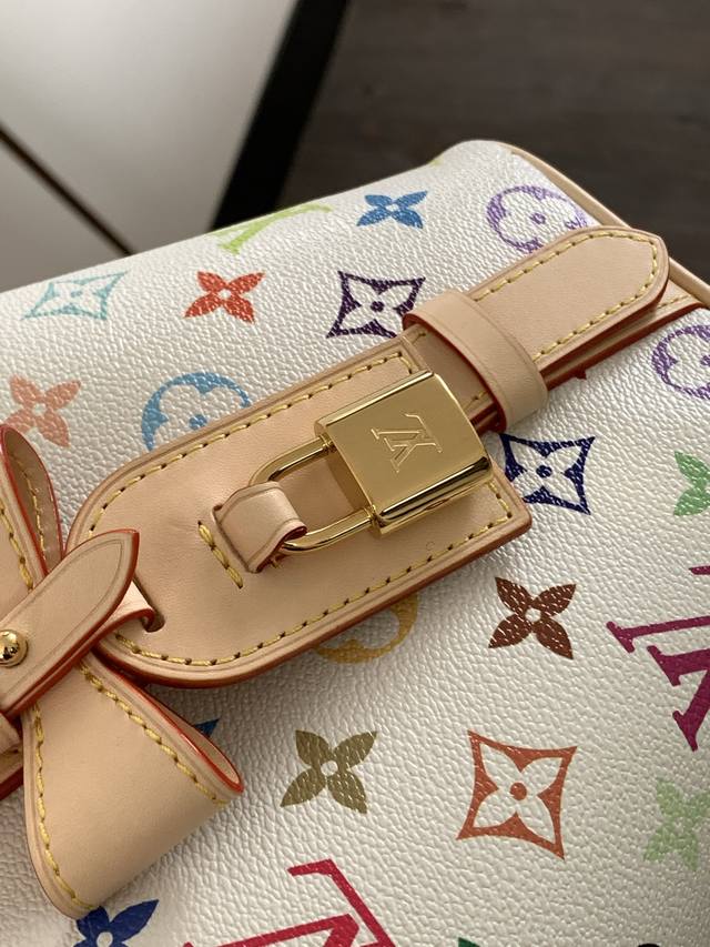 全钢五金 Mb163C01变码芯片 特级配全套包装 M13089白三彩 本款 All In Bb手袋以灵动细节传递路易威登X村上隆再版系列的玩趣格调。Monogram 涂层帆布呈现艺术家笔下斑斓的彩虹色调,名牌融入蝴蝶结和挂锁装饰。巧用可调节牛皮革手柄和皮革肩带,手提、肩背和斜挎随心而换。详细特征