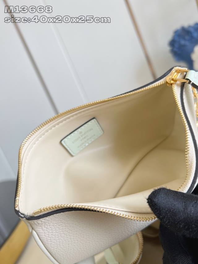 出厂价p 顶级原单 M13668奶白 Louis Vuitton 2025 秋冬系列。 创意总监 Nicolas GhesquièRe 将我们带入一个 情感交汇 的火车站,他以19世纪的铁路旅行为灵感,设计融入古典与未来元素,呈现了一系列结合优雅、实用和飘逸轮廓的造型,还有各款经重新设计的行李箱及手袋,完美诠释着最代表品牌历史的 旅行精神 Louis Vuitton 最具传奇色彩的手袋经重新演绎,同时向品牌历史的旅行精神致敬 向Keepall的传统在以柔和色调和流线造型重新设计的软身手袋中得到呼应,散发出