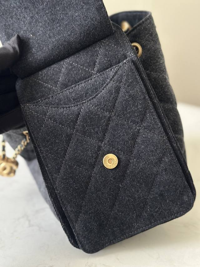 复古金币纽扣抽绳水桶包+菱格纹+复古黑金