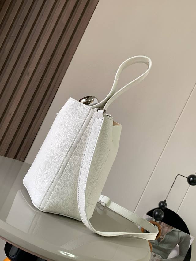 迷你柔软粒面牛皮革 pebble Bucket 水桶手袋pebble将纯粹的简约线条与瞩目设计风格巧妙融合造就别具一格的创新的手袋设计。标志性的 Anagram 雕刻五金件兼具装饰和实用功能,可调节肩带长度并适合多种携带方式,独特的扭曲结构与微妙的细节相得益彰。此迷你版本采用柔软粒面牛皮革制成。可斜挎、肩背或手提*可调节可拆卸肩带*磁扣开合*内袋*合成革衬里*