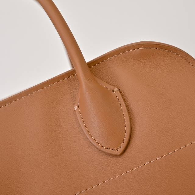 新款的手提包也太软糯了叭!似塌非塌的慵懒感太适配秋冬了 简直就是又酷又高级 时尚而不枯燥的简约设计 精选质感丰富细腻的小牛皮打造出略呈梯形的造型,侧边以搭带缀饰带来设计巧思。斜挎噢 上身效果用潇洒来形容非常恰当