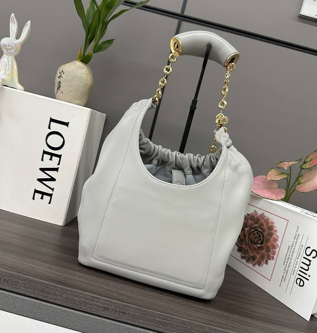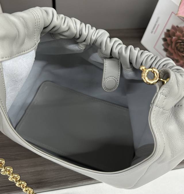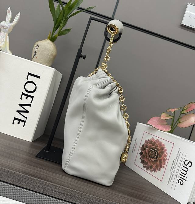 low小号纳帕羊皮Squeeze手袋一款精致而柔美的全新手袋,采用触感柔软的纳帕皮革制成。这款顺手艺是传统工艺、创新研究和独特设计的杰作,具备令人惊讶的轻盈褶皱包身、可调节甜甜圈链条和触感柔软的提手。此小号版本采用纳帕羊皮革打造。*可肩背、斜挎或手提*可调节链条肩带,搭配Anagram携刻鹅卵石,附加额外链条,可进一步延长肩带*磁扣开合*内部拉链口袋*无衬里*Lo*Ewe烫金或烫银。