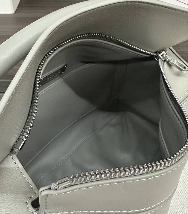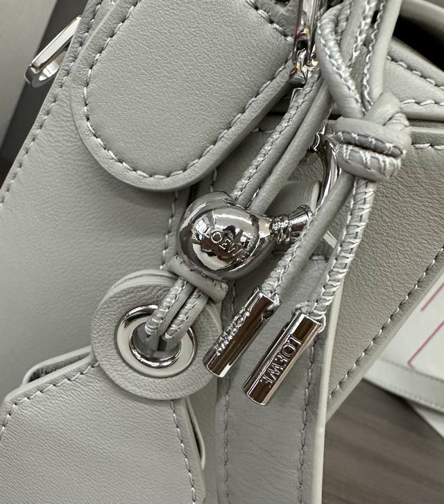 可拆卸可调节肩带,饰有旋转卡扣*拉链开合,铰接式拉链头 一个外部拉链后袋,一个内部插袋*可拆卸 Loe**We 烫金或烫银标签,饰有隐秘口袋和气球骰子*长方形金属脚钉 纳帕羊皮革衬里 Anagram 压纹、饰牌内部镌刻 Loe**We.