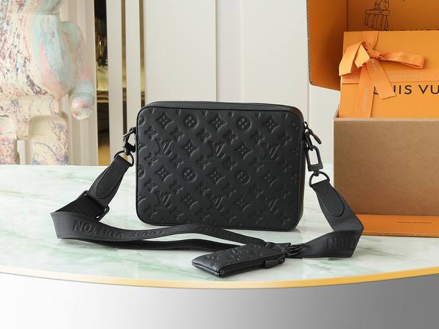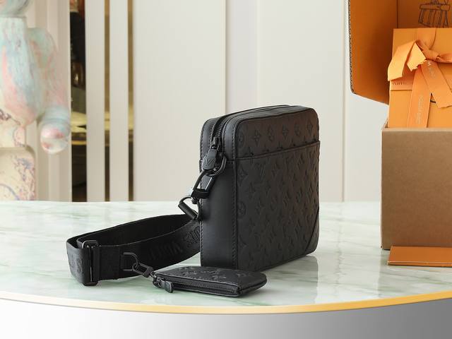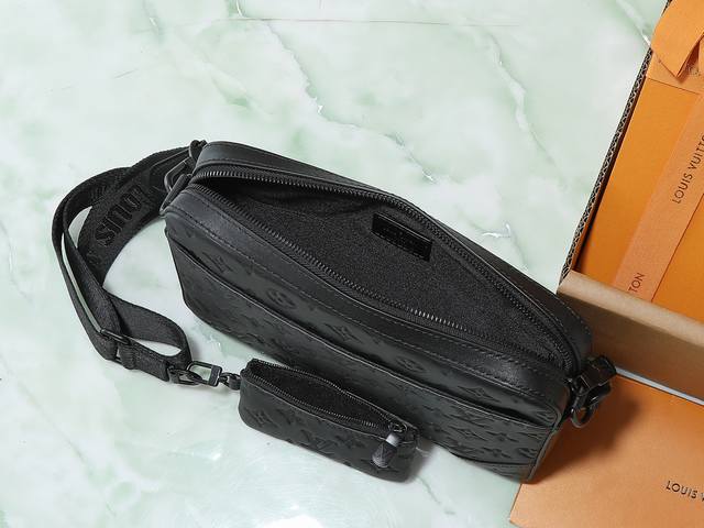 顶级原单 独家实拍 M69827 全皮压花邮差包Sprinter 信使包 Sprinter 信使包以 Monogram 压纹图案巧衬 Monogram Shadow 软牛皮,点缀哑光金属件。全皮压花男士二件套挎包横款挎包外袋、拉链后袋及内贴袋令随行所需井然有序。27.0X 4.5X 18.5 Cm。