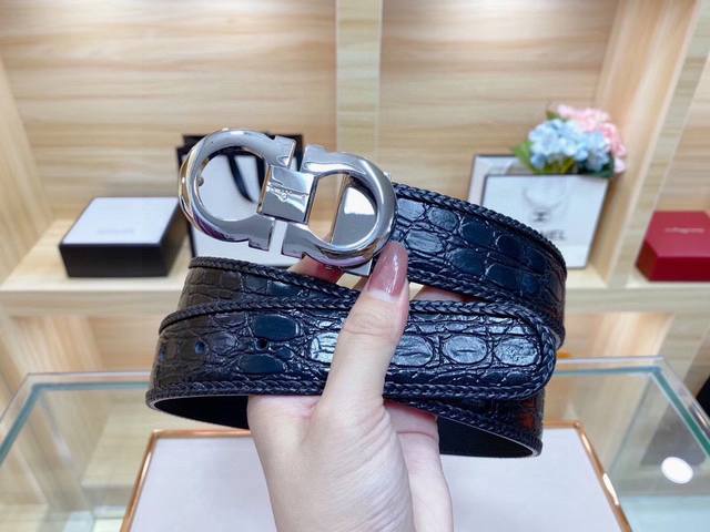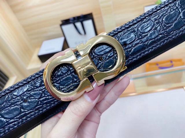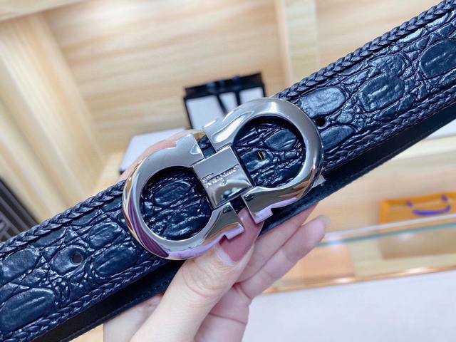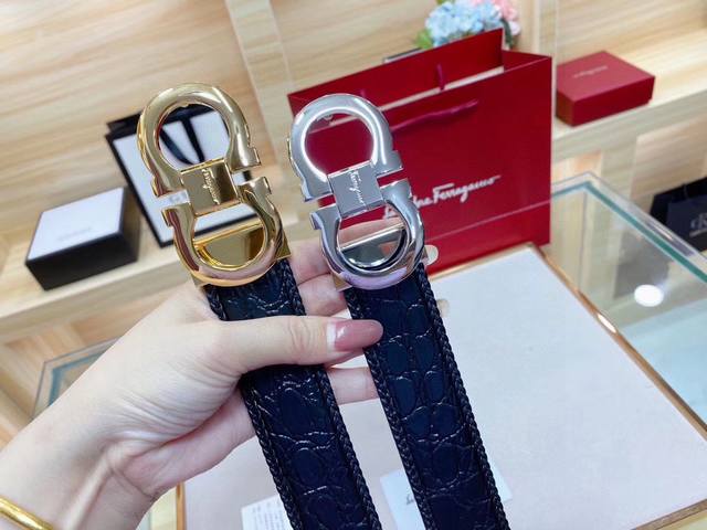 好货发现 Ferragamo菲拉格慕男士专柜对版金属扣,头层牛皮双面外用腰带,商务通勤休闲场合均适合佩戴。3.5Cm