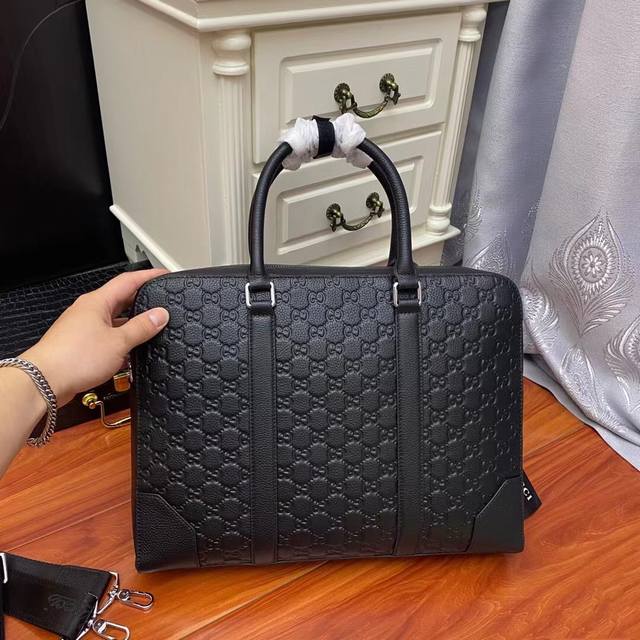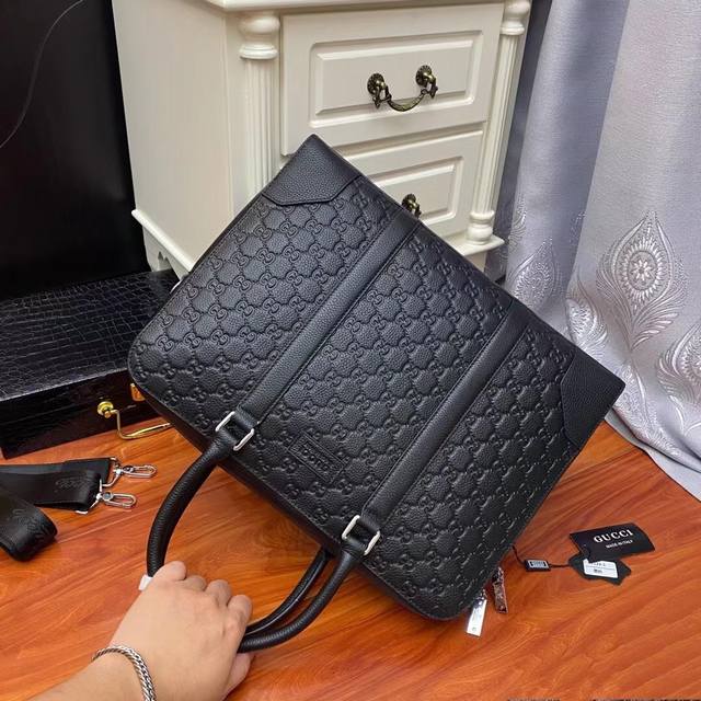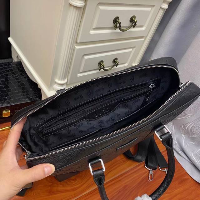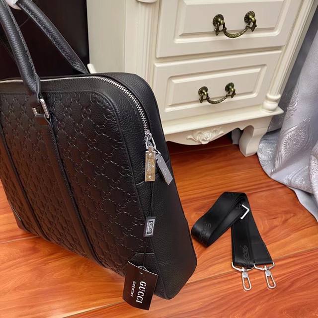 断货王 不是头层牛皮不要钱 Gucci型号:33233-5。最 新款公文包出货!拉链封口采用顶级意大利牛皮进口里布!做工精湛 尺寸:38.5X29X8Cm 独家实物实拍 牛皮压G