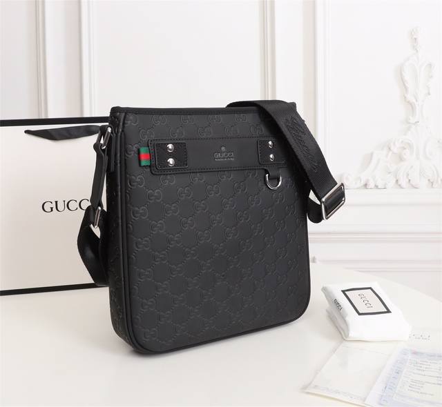 批 型号:33086~斜挎包黑色 古奇 Gucci男士休闲系列挺阔流畅大方的楦型设计,以精湛缝线勾勒休闲的雅致情怀、描写男人自信的轮廓!看似简约的一款、实际做工相当复杂、[跳跳][跳跳][跳跳]非常简单经典。规格:26X27X6Cm