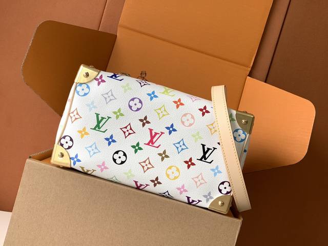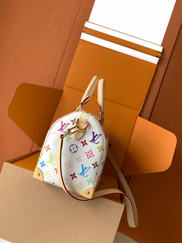 / 特级原厂全钢 M13085 本款Speedy Bandouliere25手袋为经典Monogram图案渲染日本艺术家村上隆笔下的明丽色调,与蝴蝶结造型钥匙包一道