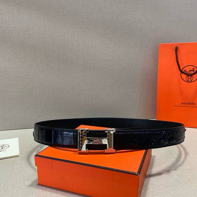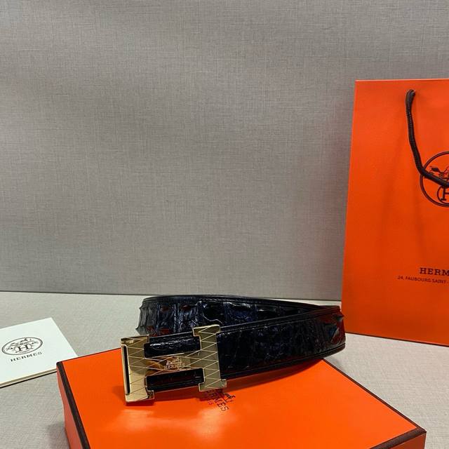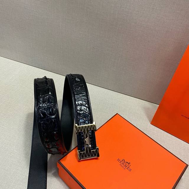 / 真鳄鱼骨皮无拼接皮 配4.0Cm 钢扣 !