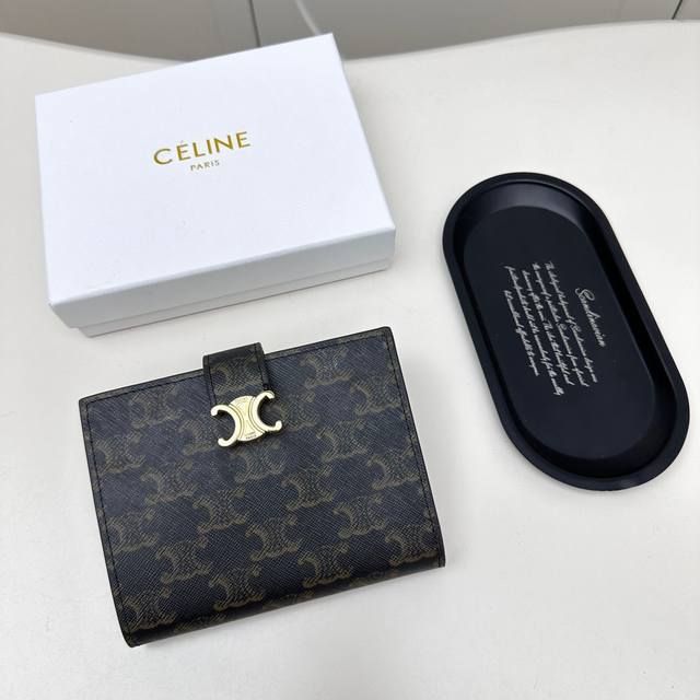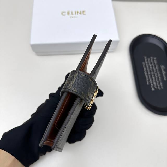 Celine 4770颜色:黑色 棕色 老花 尺寸:14*11*2 Celine专柜同步,采用进口小牛皮,金色饰面,Triomphe 金属按扣开合,七个信用卡位