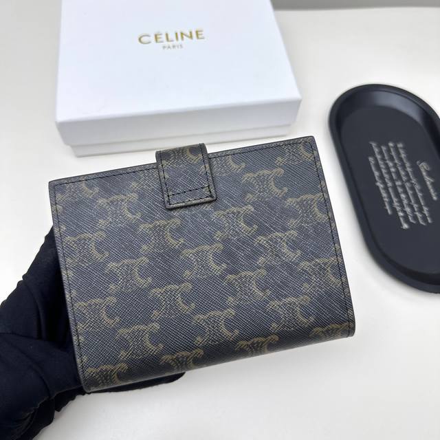 Celine 10523颜色 黑杏棕尺寸 11*10*5 Celine短式钱包非常炫美的一个系列,专柜同步,采用头层牛皮,精致时尚!