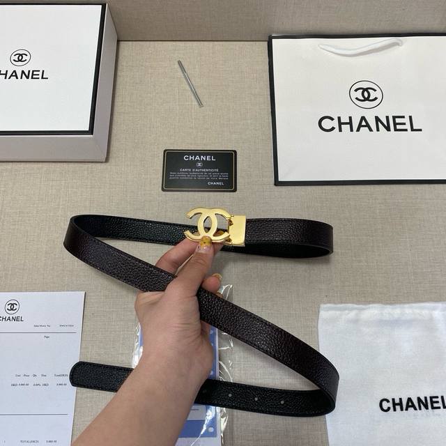 品牌:香奈儿Chanel 等级:女士皮带.定制头牛层皮.双面可用。油精边致、官同网步新款 配专全柜套包装 送眼打针 长度裁剪 扣头:钢扣 长度:90 115Cm