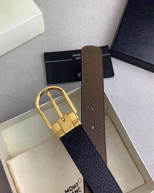 / 品牌: 万宝龙 原版五金系列 等级:原版荔枝纹 3.5Cm 上身效果高档,设计不断创新,始终保留着风格和品位,演绎时尚,自信活力。 扣头:18K纯钢扣 黑配卡其