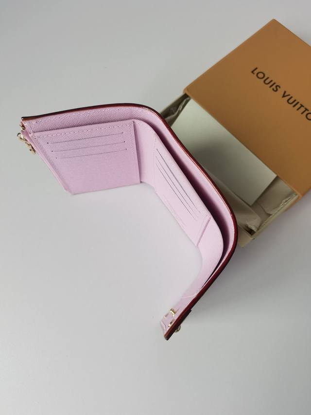 / 颜色 粉尺寸 12X9.5M13427 新款 经典老花面料配上粉色樱花 用双色皮革衬托出图案,打造出精致的氛围。既紧凑又能收纳纸币、硬币、卡片的空间也很有魅力。
