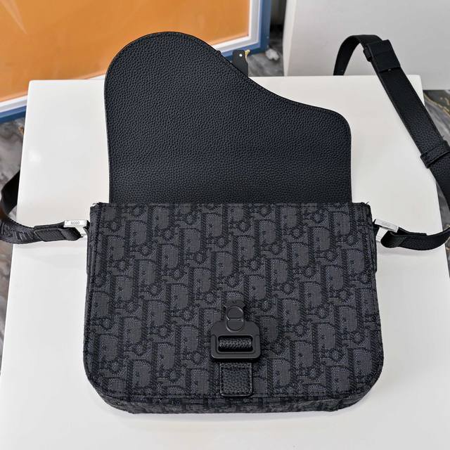 这款马鞍包搭配肩带,是本季新品,精巧时尚。饰以黑色和黑色 Oblique 印花,粒面牛皮革翻盖突显马鞍轮廓,以铝扣点缀。内部隔层宽敞,搭配贴袋,可容纳各种日常用品。迷你款式,搭配可调节的皮革和Christian Dior标志提花肩带,可肩背或斜挎。