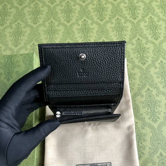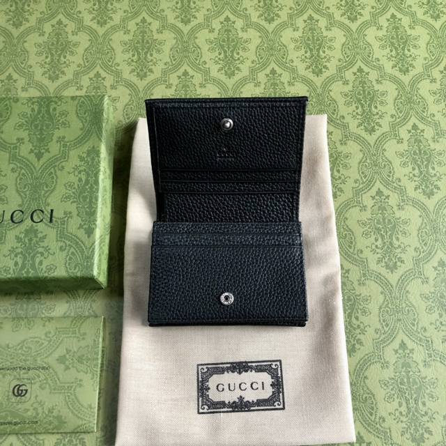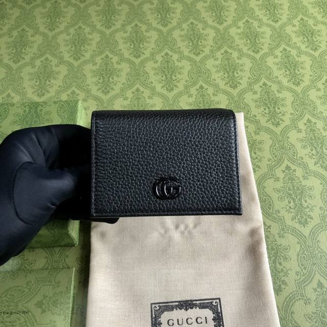顶配版 高品质 Gg Marmont系列卡包 这款Gg Marmont系列卡包采用经典耐看的黑色皮革制作,为Aria-时尚咏叹调 系列再添经典之作。双G配件源于70年代的腰带扣设计,在这款钱包上采用同色调树脂材质焕新演绎。经典设计与单色调配色相结合,突显现代时尚风范。