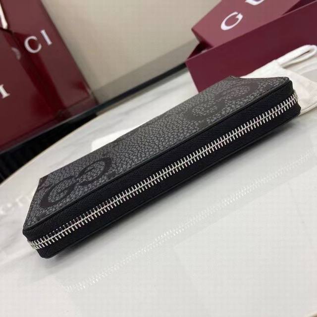 顶配版 新品 经典字母交织图案将小件日用单品打造成时尚配饰。新颖的纹理与饰面在Gucci全新系列中依旧大放异彩,尽展澎湃活力和个性魅力。这款全拉链钱包以深灰色和黑色粒面牛皮革匠心打造,通体缀饰Gg标识。