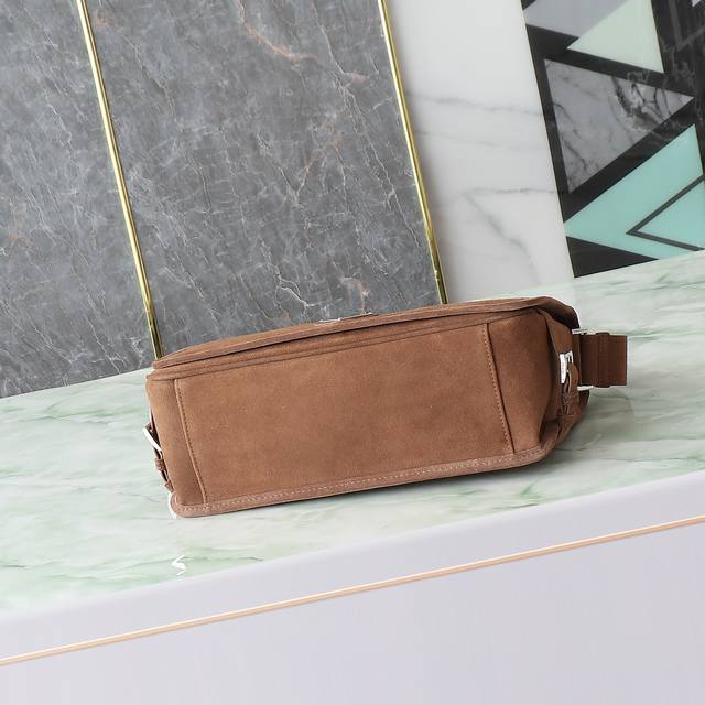 这款单肩包兼具现代魅力与实用功能,廓形简约流畅,柔软的绒面皮革尽显精致之感。搭配精美装饰带,点缀以别致的三角形徽标。型号 73_2C4S_F0324_V_Oo0 搭扣装饰带