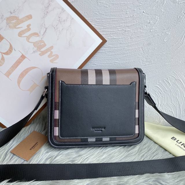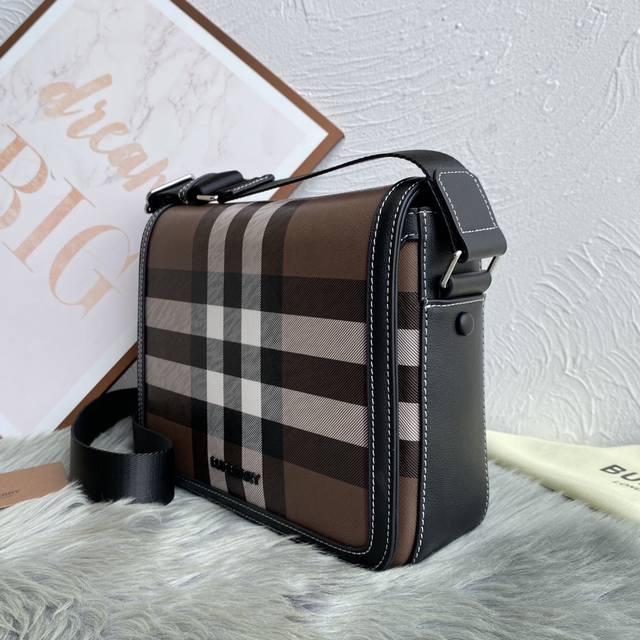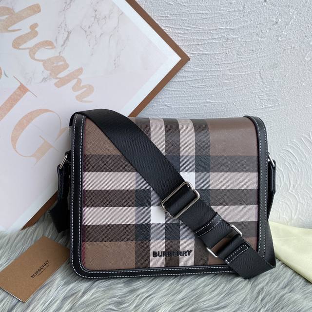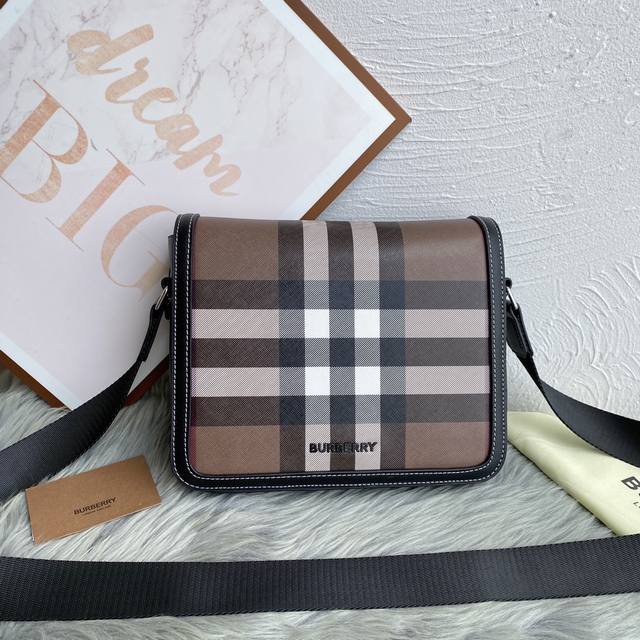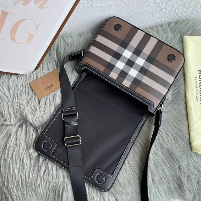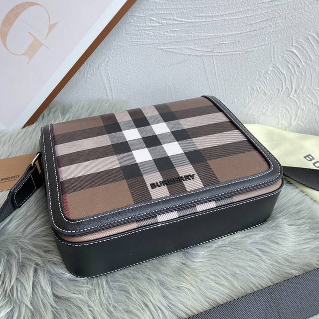 B家顶级原单 精致立挺设计,装饰 Burberry 格纹,搭配皮革边饰和品牌徽标。