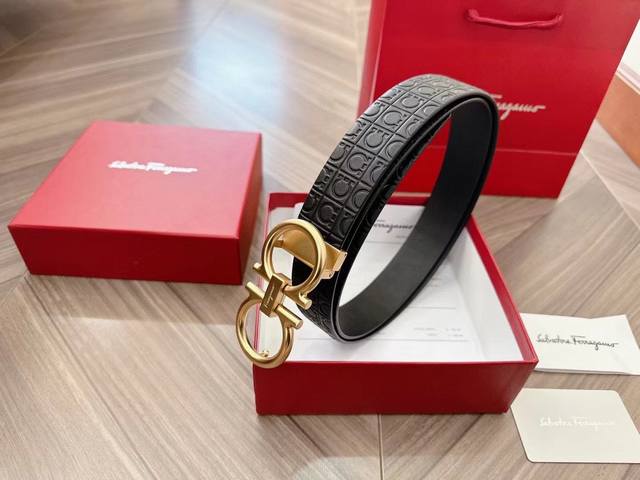 原厂皮 Ferragamo.菲拉格慕 全套包装 支持nfc扫码 宽度3.5Cm 高级定制款男士皮带 双面进口牛皮 可双面使用 自行选择搭配 真材实料...