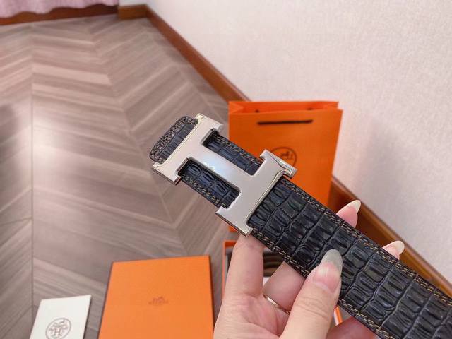 爱马仕 Hermes 3.8 Cm 双面原版皮,车双黄线小鳄鱼纹,爱玛仕专用钢扣,带身采用爱马仕专柜最新元素、双色原版款式,大气有光泽度,100%进口牛皮,扣头