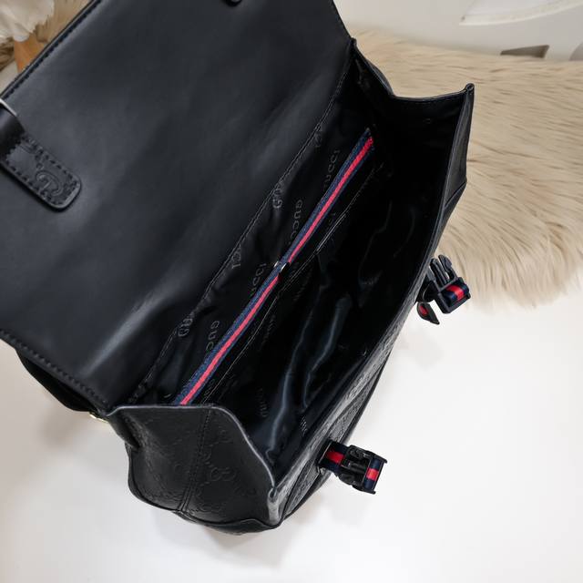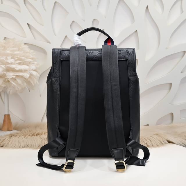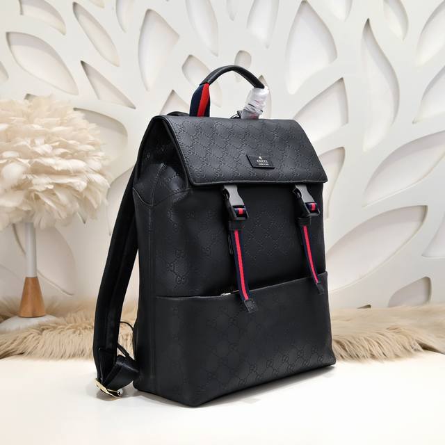 gucci-古奇最新款男士双肩背包采用进口小牛皮 皮质柔软 手感超赞 版型超正 做工精致 细节完美 时尚休闲百搭 质量与质感都能衬托出你独特的品味 出街帅帅哒尺寸:40.30.12Cm