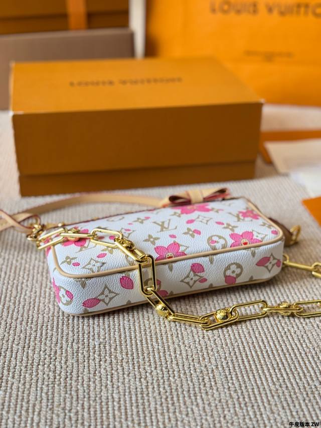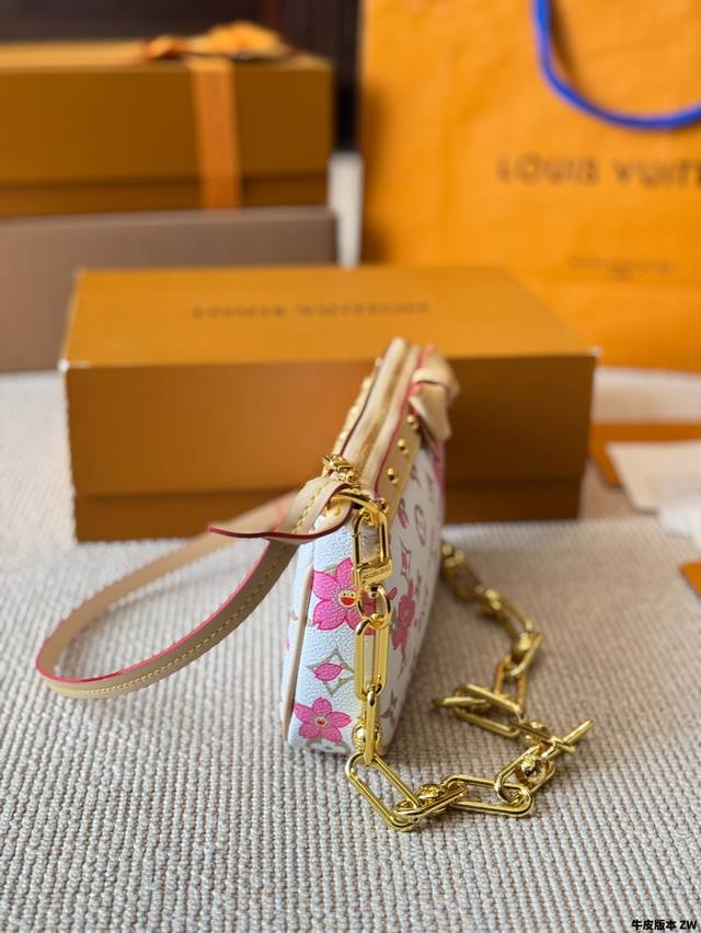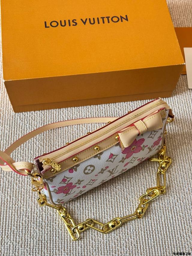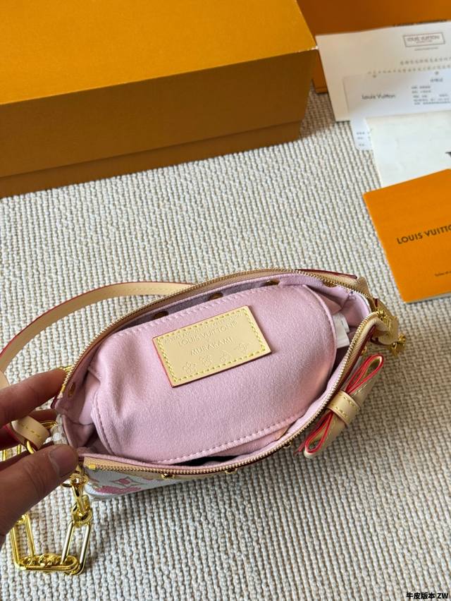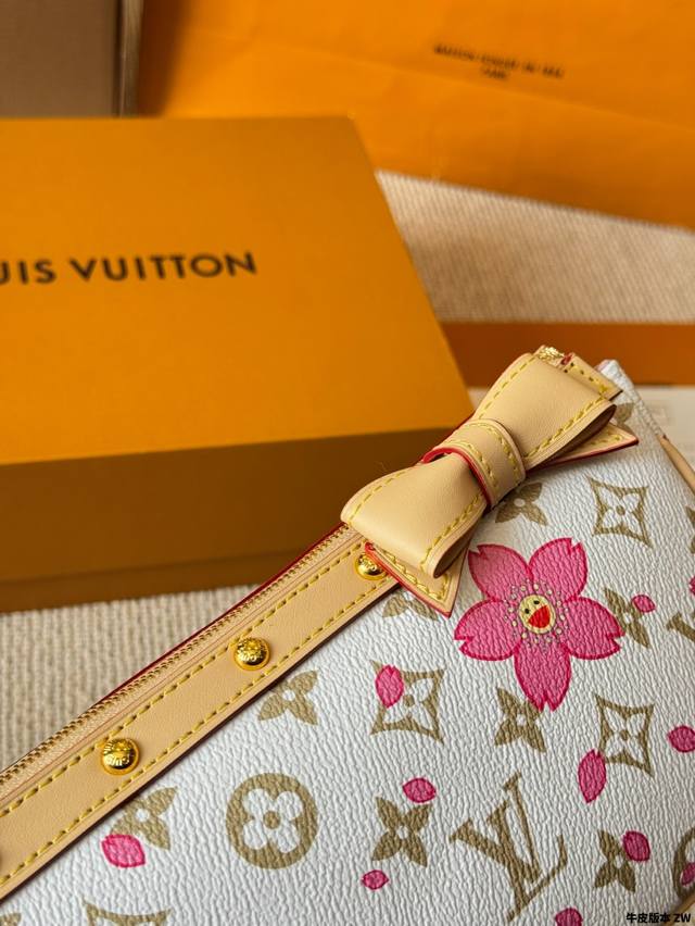牛皮版本 Lv X 村上隆樱花系列 麻将包 2025早春走秀款 枕头包 Lv 路易威登 新款经典枕头包单肩斜挎女包 尺寸20 13Cm 折叠盒包装