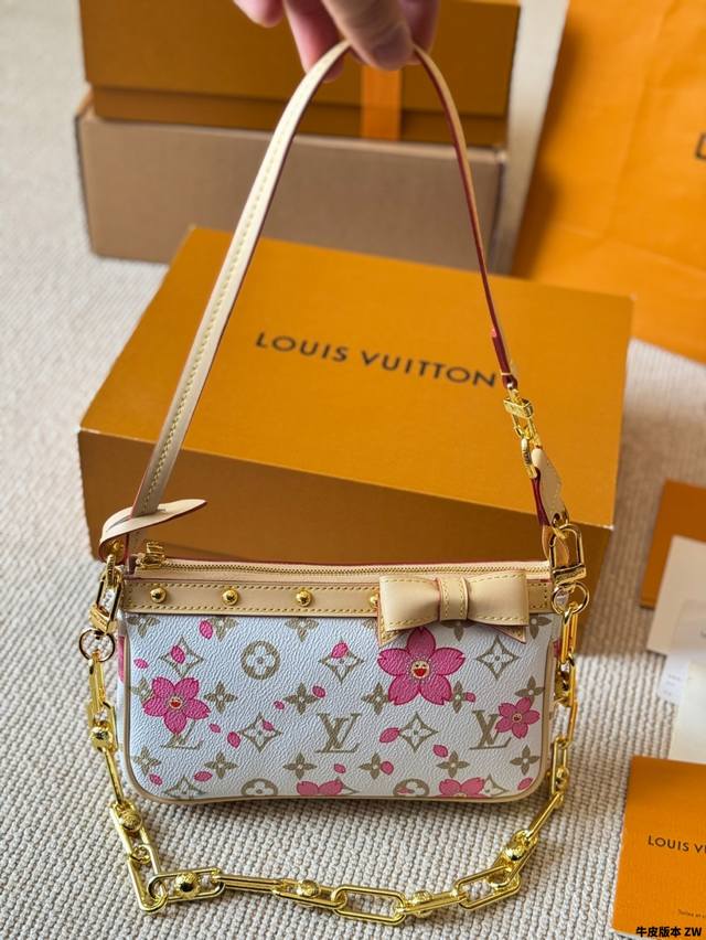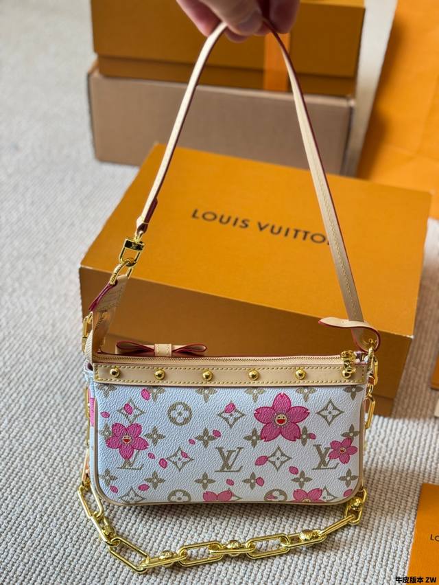 / 牛皮版本 Lv X 村上隆樱花系列 麻将包 2025早春走秀款 枕头包 Lv 路易威登 新款经典枕头包单肩斜挎女包 尺寸20 13Cm 折叠盒包装