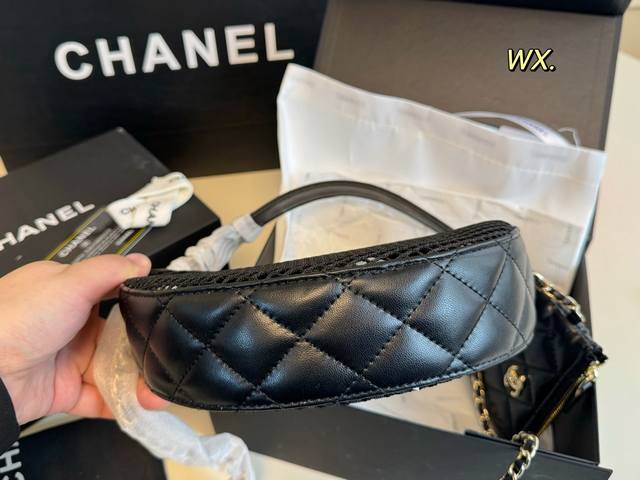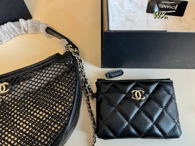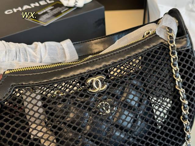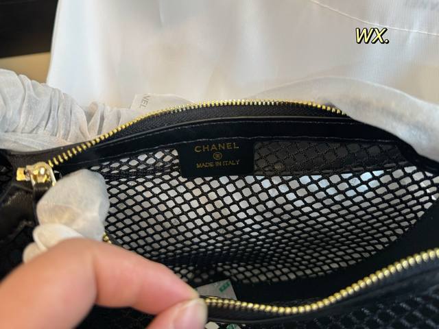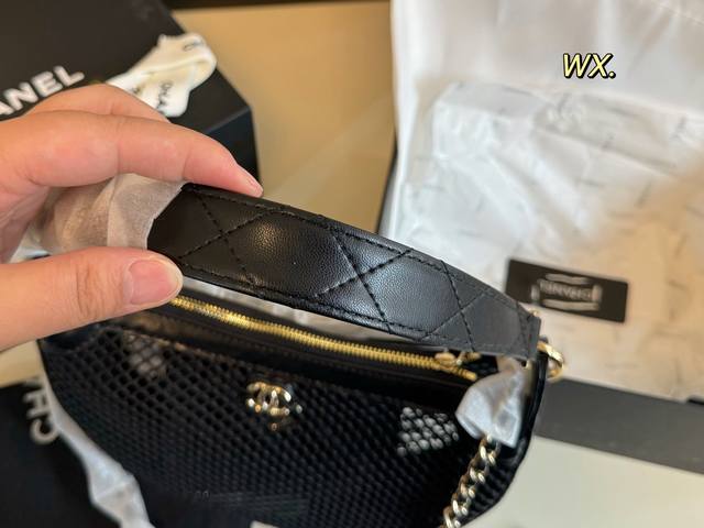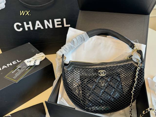 / 折叠盒 Size:23×14 Chanel香奈儿新款25S镂空子母半月包 小香走秀款限量版半月包~ 超级时髦的一款又叫渔网包 多钟背法,上身洋气又拉风