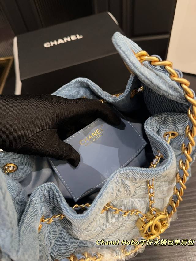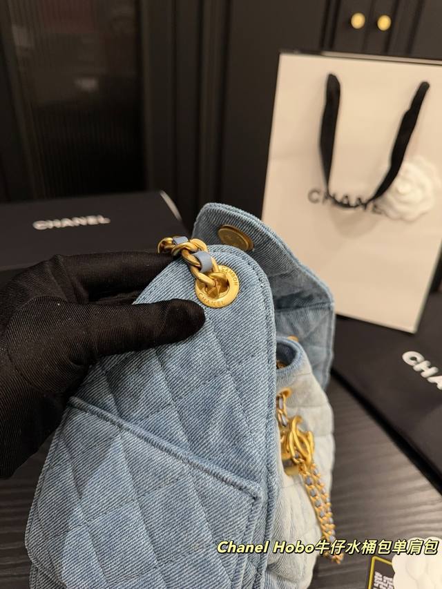尺寸28.30 香奈儿Chanel Hobo牛仔水桶包单肩包