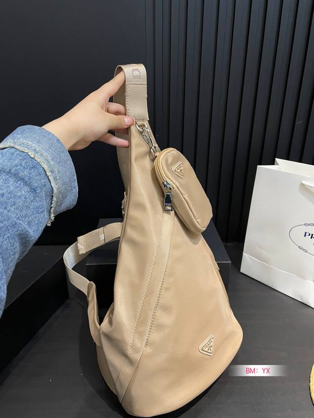 / 配盒 普拉达prada 尼龙腰包胸包 干干净净 简简单单 搭配休闲风的穿搭 舒适又有活力 尺寸:25*41