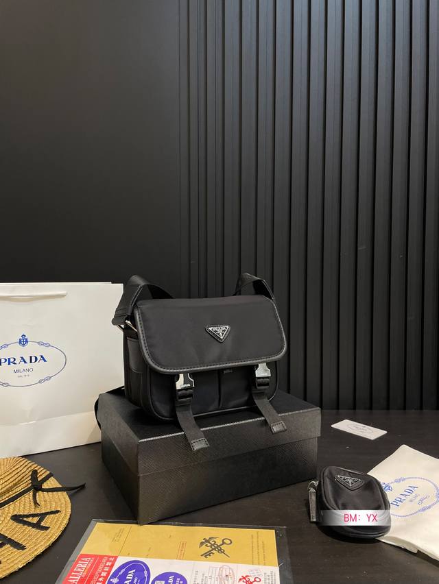 配盒 prada 普拉达 22新品帆布 邮差包 Logo五金原版一比一品质 内置隔层 炒鸡百搭实用的一款 喜欢的美妞赶快入手吧 店主推荐 质量超赞 尺寸:22*