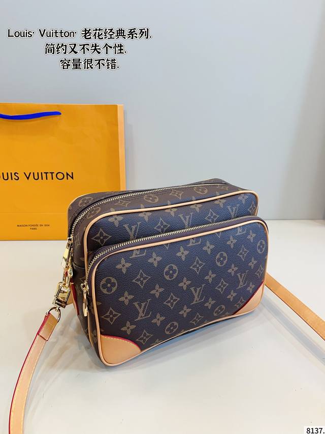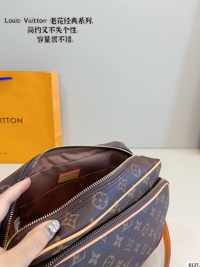 Lv新品记者包,这只是今天所以包里容量最大的,之前因为记者用来装相机,所以取名为记者包双层的相机包,这个更为简单,更适合喜欢中古包包的人,外观浅色配皮,棕色更复古有腔调 男士可以用的 Lv的中古包包 尺寸:27*8*20Cm