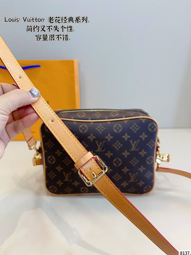 / Lv新品记者包,这只是今天所以包里容量最大的,之前因为记者用来装相机,所以取名为记者包双层的相机包,这个更为简单,更适合喜欢中古包包的人,外观浅色配皮,棕色更复