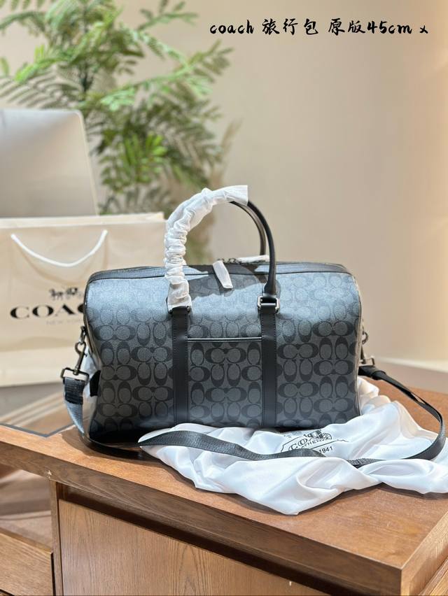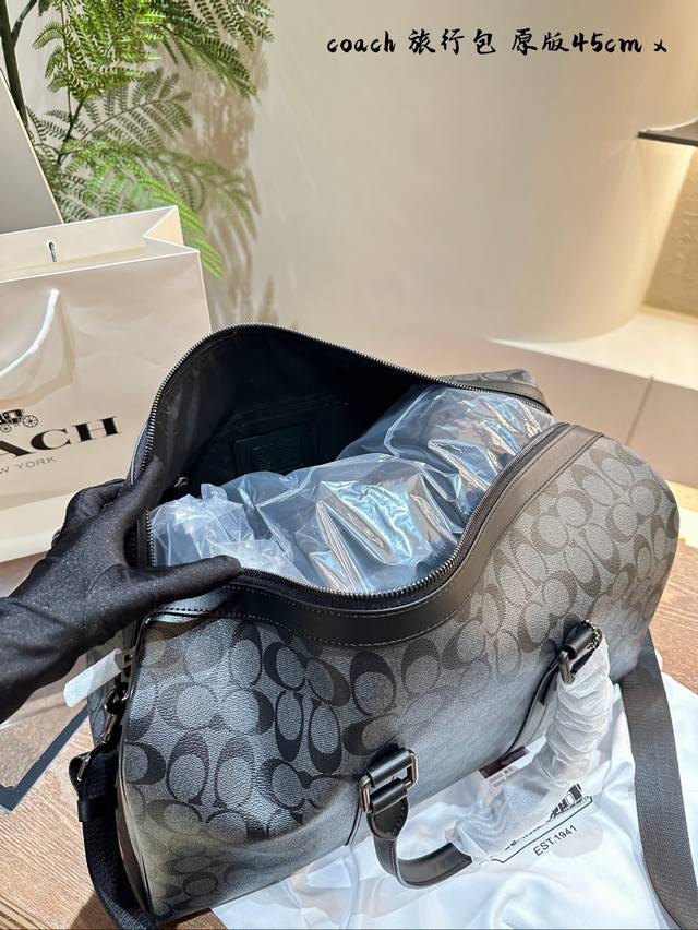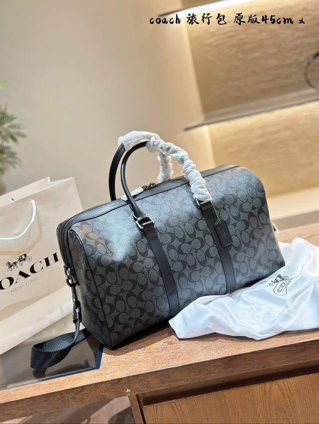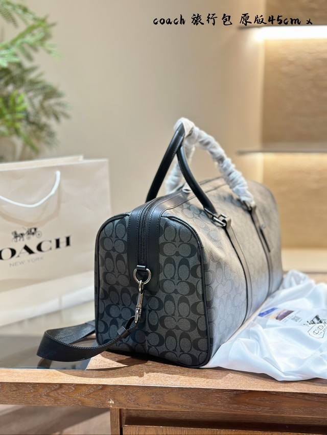 Coach蔻驰旅行包,通体采用pvc帆布涂层的材质,这种材质非常的耐磨、耐用,并且非常耐脏,非常适合我们用于健身或者短途的出差的使用,不但可以让自己的造型加分,功能性也很好同时还配备了长肩带,手拎、斜挎、单肩都是可以的,满足我们不同的一个着装 需求。#Coach包包