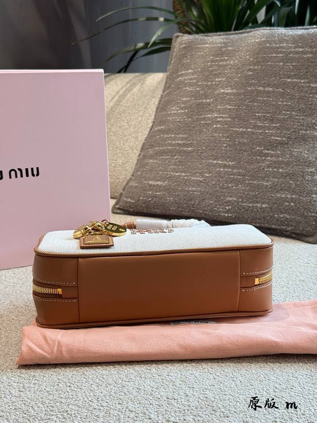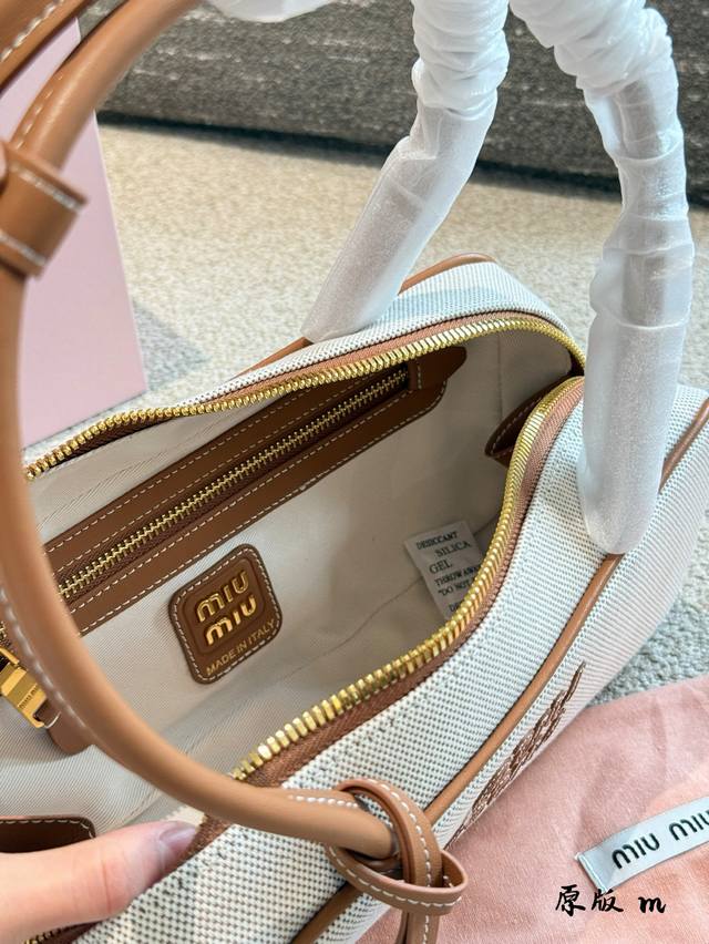 Miumiu 2025秀款pop Up帆布保龄球6秀款真的太棒了,自重超清 尺寸感觉也比公文包精致~ 帆布保龄球可以说是春夏的搭配王道了新鲜一只有33Cm配盒子