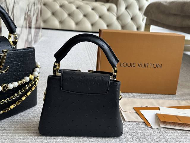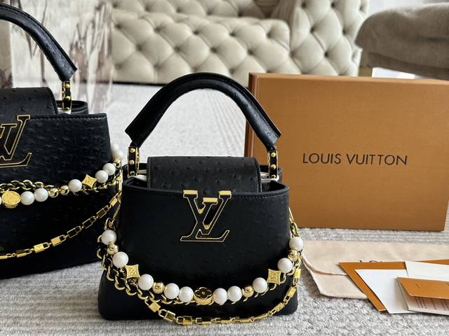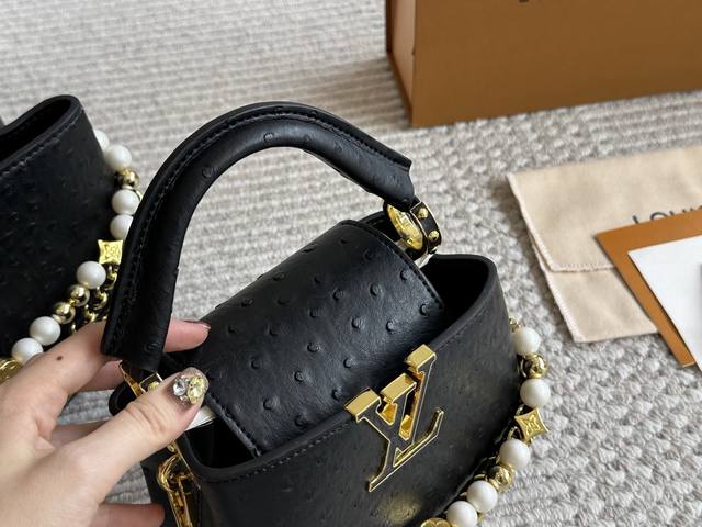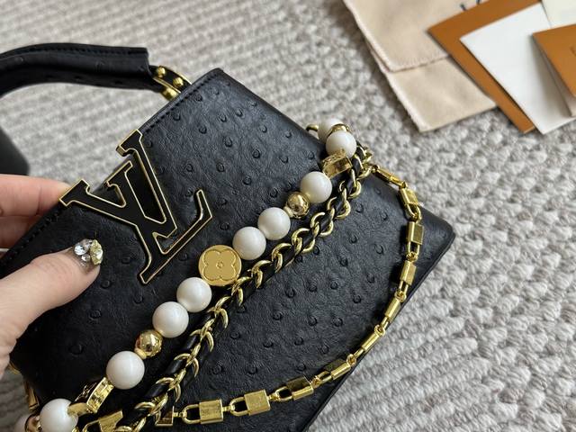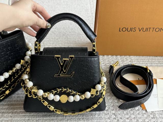 Lvcapucines 贵妇包 金色扣五金,超繁琐制作工序,女王范儿必备,Mini款独特超宽背带,经典大Logo设计,结合Monogram经典小花元素简洁大气,尺寸合理、容量Ok,可手提可单肩,经典款 大号28Cm 小号20Cm
