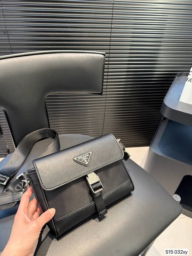 配盒尺寸17.22 普拉达Prada尼龙拼皮小水桶包