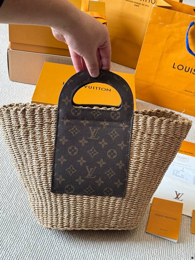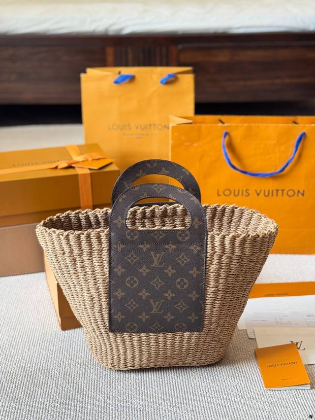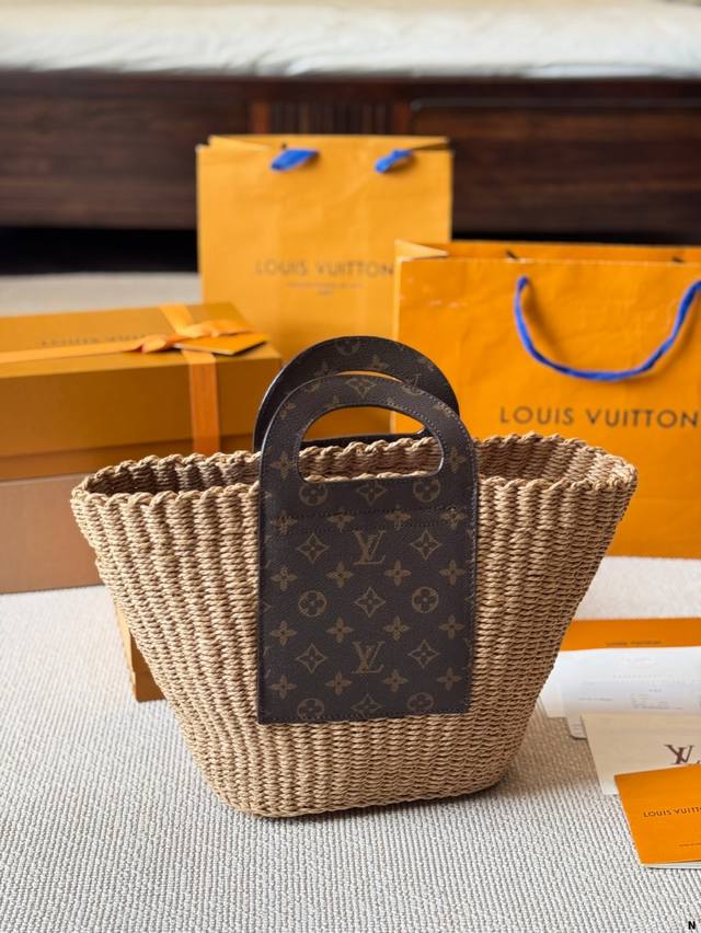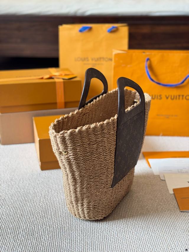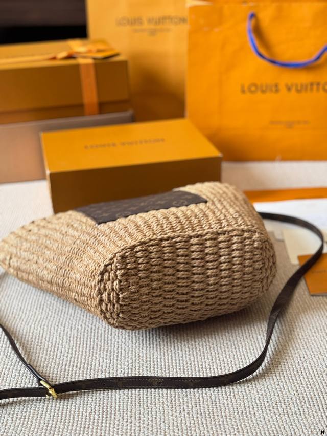 / Lv 编织水桶包 来推荐这只阳光草编包,编织和皮革,清爽也文艺,让你也可甜可美。 设计也非常实用,容量也大。同款哦夏天怎么能少了草编包呢 尺寸 22 25Cm