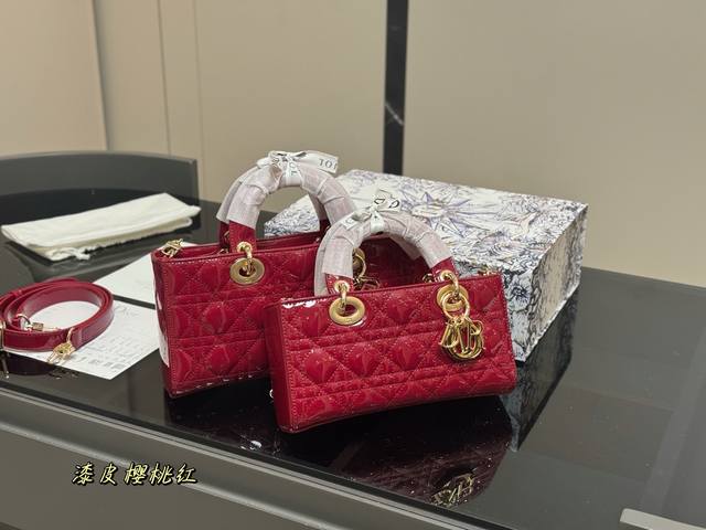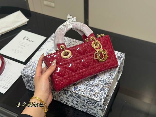 配盒 迪奥Lady漆皮 横版戴妃包 2025Dior款新包型 两根包带 我喜欢短的那根~ 一只很“我”的包爱了 尺寸:25Cm 22Cm 16Cm