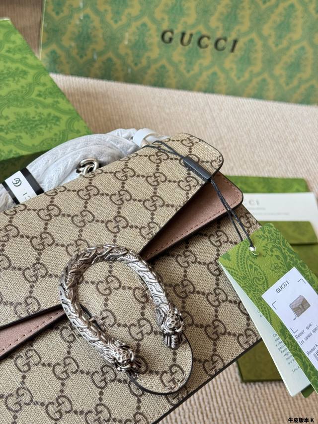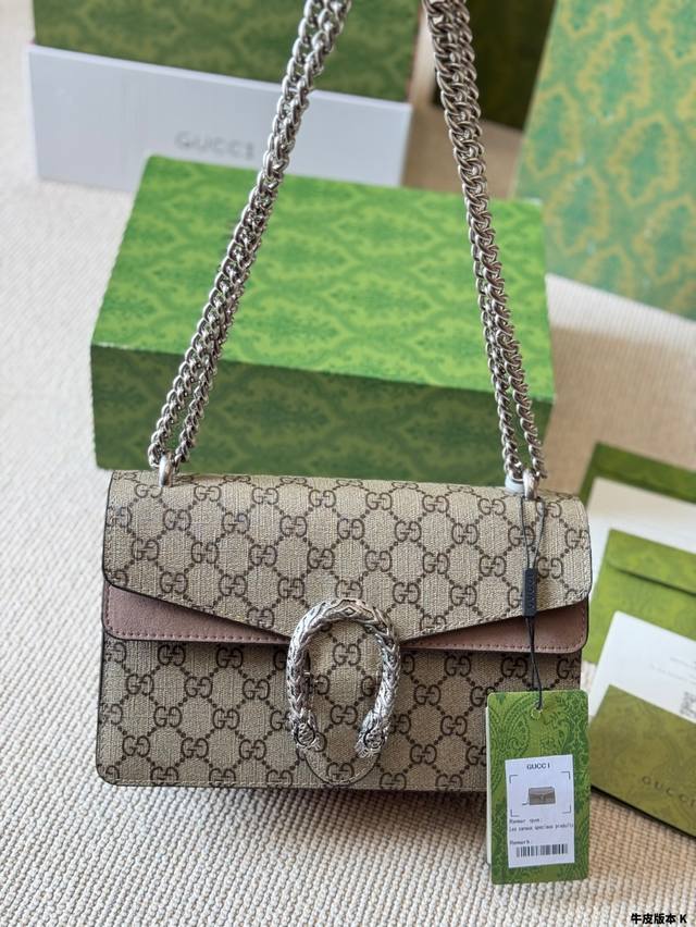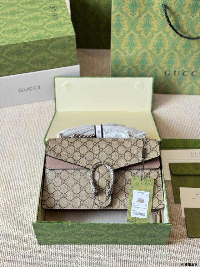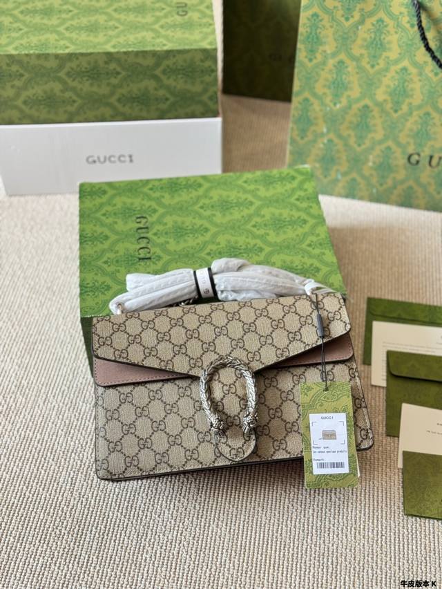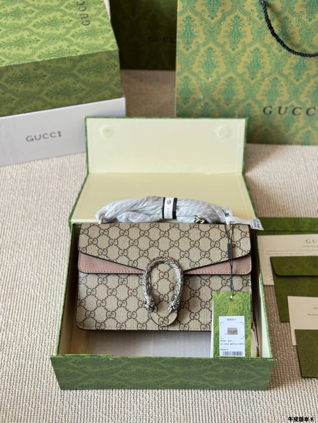 Gucci 全面升级专柜对版品质 经典Dionysus酒神包 就是Alessandro亲自设计的 名字来源于古希腊罗马神话中的酒神 经典pvc搭配进口真皮翻毛皮打造古奇复古风格 虽为手袋界的新秀 但即使是在It Bag层出不穷的今天 经典包款里也有它一席之地 销量王 今年一样火爆 配送折叠盒子包装
