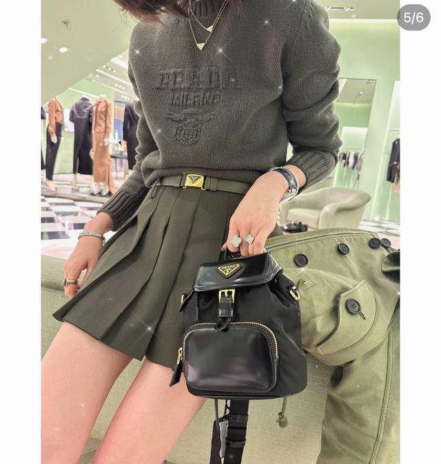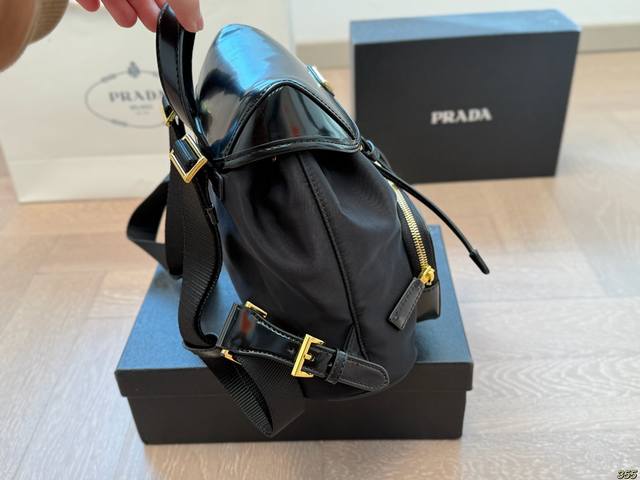 配盒 普拉达尼龙双肩背包! 上班通勤、旅游、都是不错的选择颜值在线,容量充足,轻便实用! 尺寸24.28Cm