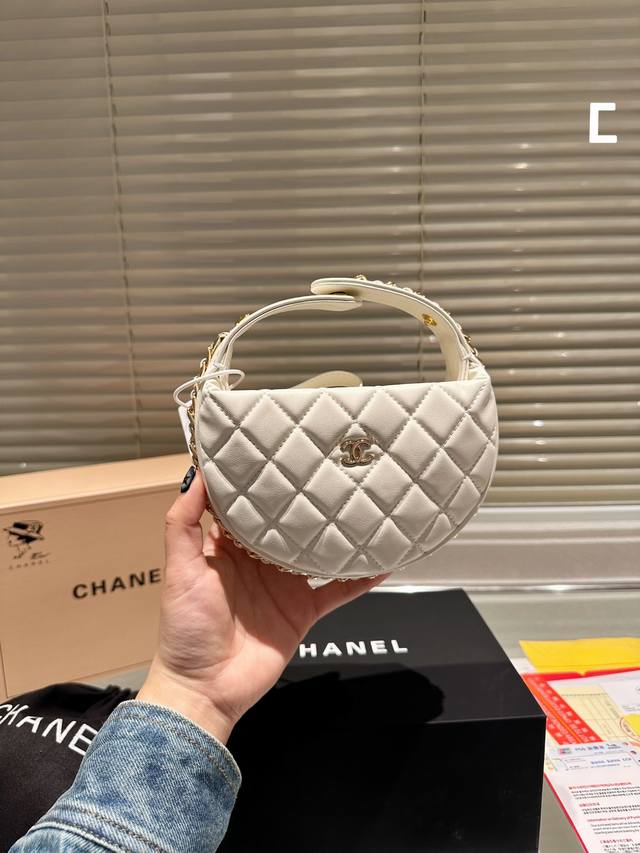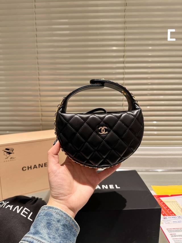 chanel呼啦圈迷你小包 香奈儿早春度假系列的新包子 更日常更随性一点,无法斜挎只能手提,手机小一点可以塞进去,把手上是摁扣开合,可以打开方便拿取东西,扣上就