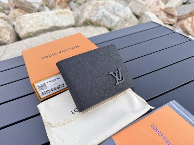 工厂p价 顶级原单 M69829短夹Lv Aerogram Multiple 钱夹为经典设计注入崭新意味。考究工艺令牛皮革呈现丰盈粒面质感,金属Lv字母标注品牌