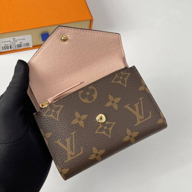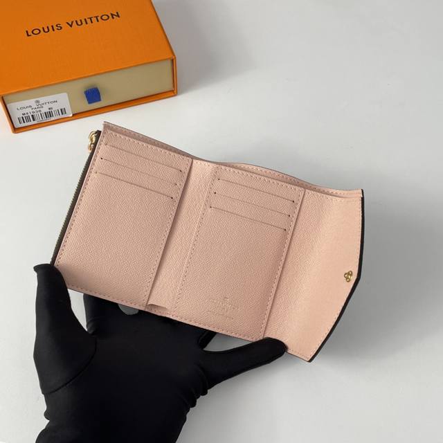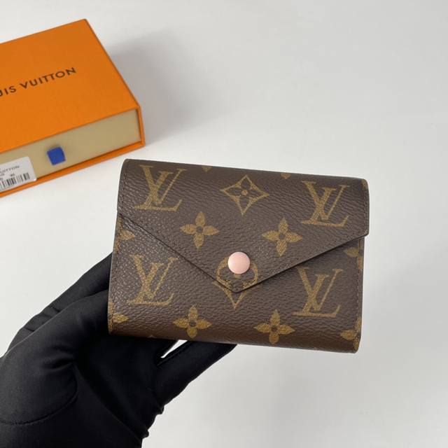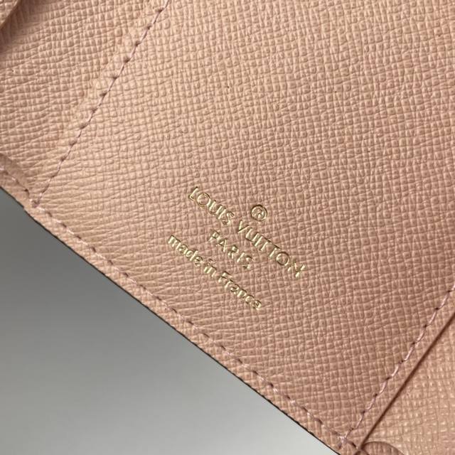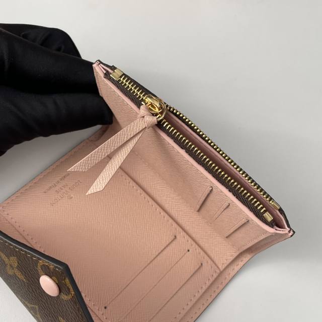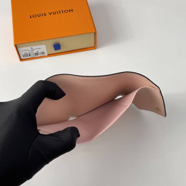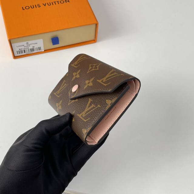 海外原单M41938粉色独家实拍!风格柔美而功能强大,此款小巧的Victorine钱夹是适宜随身携带的上上之选。标志性Monogram帆布搭配多彩皮革内衬,风格