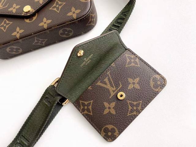 变码芯片 M80091墨绿 三件套 Multi pochette FéLicie 三合一 主包袋的麻将包可以放下最大号的Iphone 手机,内里有一个隔层和三个
