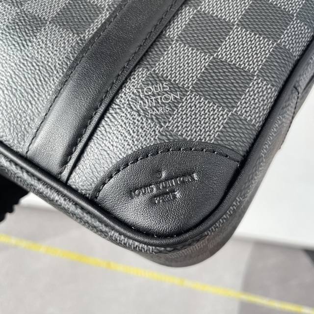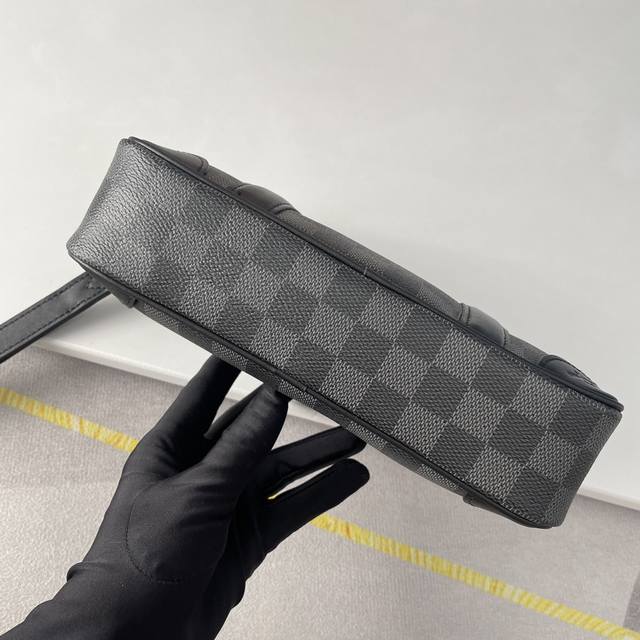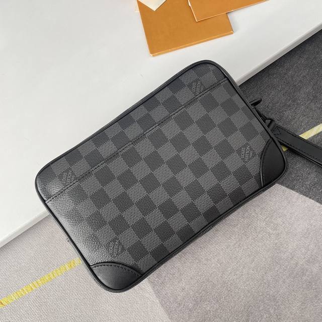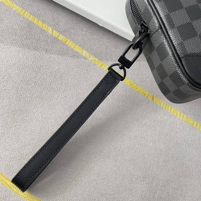 工厂p价 海外原单N60501独家实拍!pochette Kasai手包 宽敞的拉链开口、丰富的内外口袋与插槽带来极强的实用性,此款采用标志性 Damier Graphite 涂层帆布材质的 Kasai 手包既可夹于手臂内侧,亦可通过包带系于腕间。尺寸:25×15.5×6.5Cm
