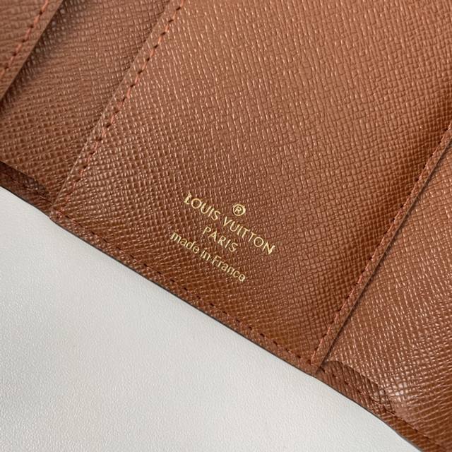 / 海外原单M62472独家实拍!Victorine 钱夹以 Monogram 帆布讲述温婉格调与功能设计的融合。一枚按扣点缀信封式翻盖,将粒面皮革内衬的色彩延续其
